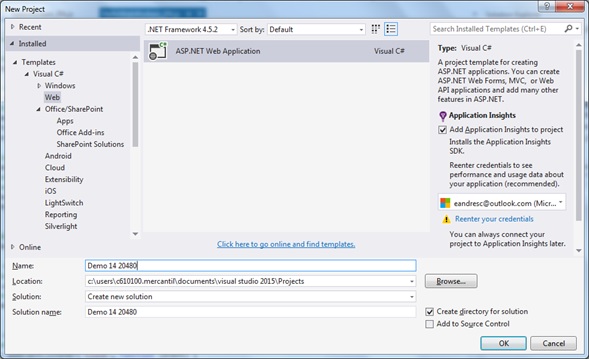 Name colocamos el nombre del proyecto que para el Ejemplo es “Demo 14 20480” y